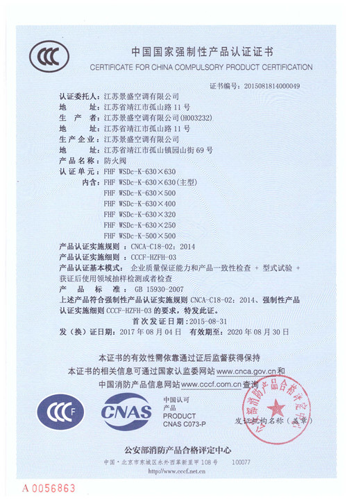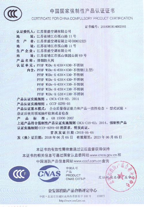 • 3c防火閥專業生產廠家盡在江蘇景盛空調有限公司